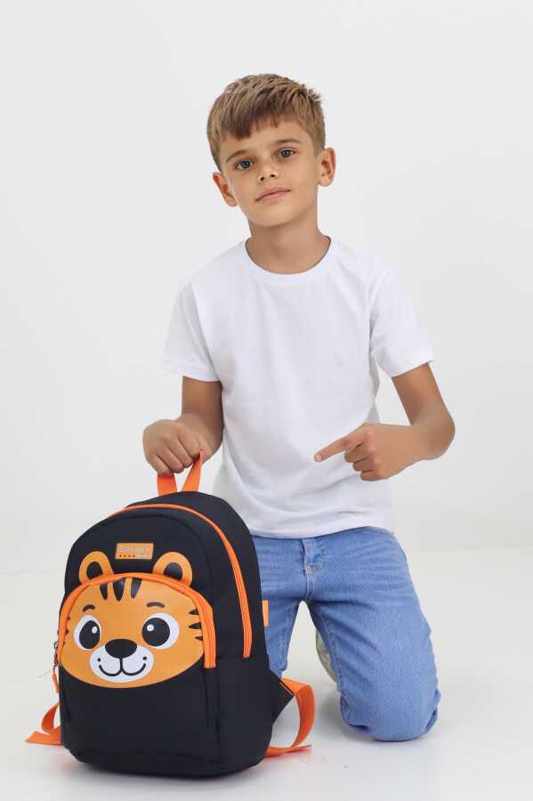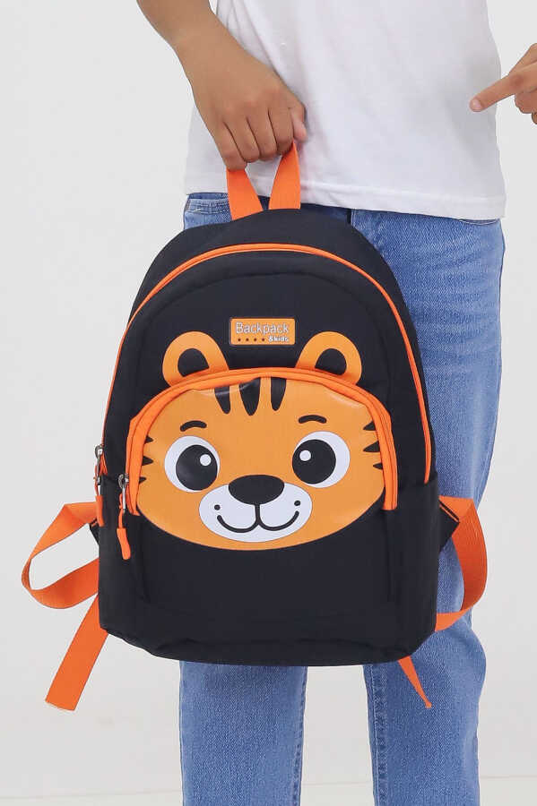 - Fermuarlı Ön Cep: Kaplan figürünün yer aldığı bu cep, kalem kutusu, küçük oyuncaklar ve atıştırmalıklara hızlı erişim sağlar.