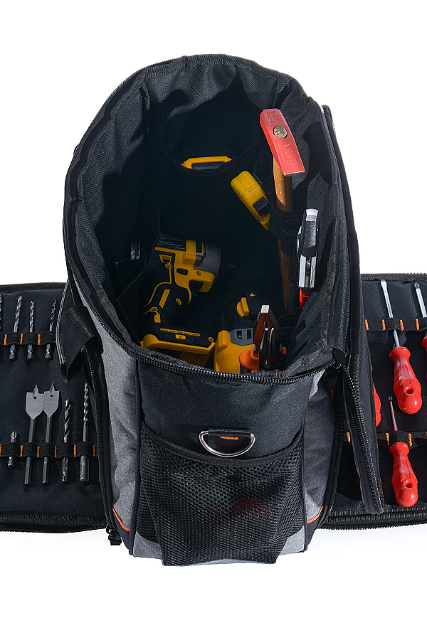 Çantanın geniş iç hacmi sayesinde çok sayıda alet ve ekipmanı bir arada saklayabilirsiniz. Ancak tam kapasite, aletlerin boyutuna bağlı olarak değişir.