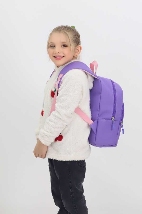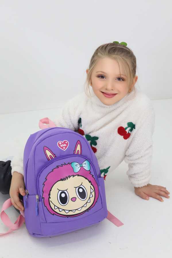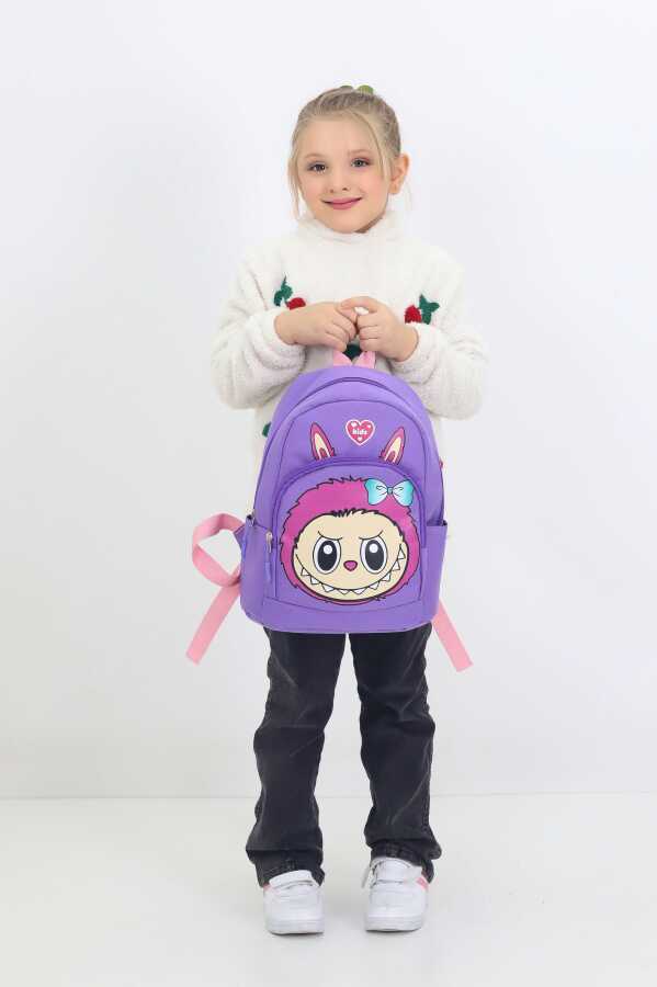 Labubu Figürlü Mor Kız Çocuk Anaokulu Kreş Sırt Çantası (36x26x14 cm)