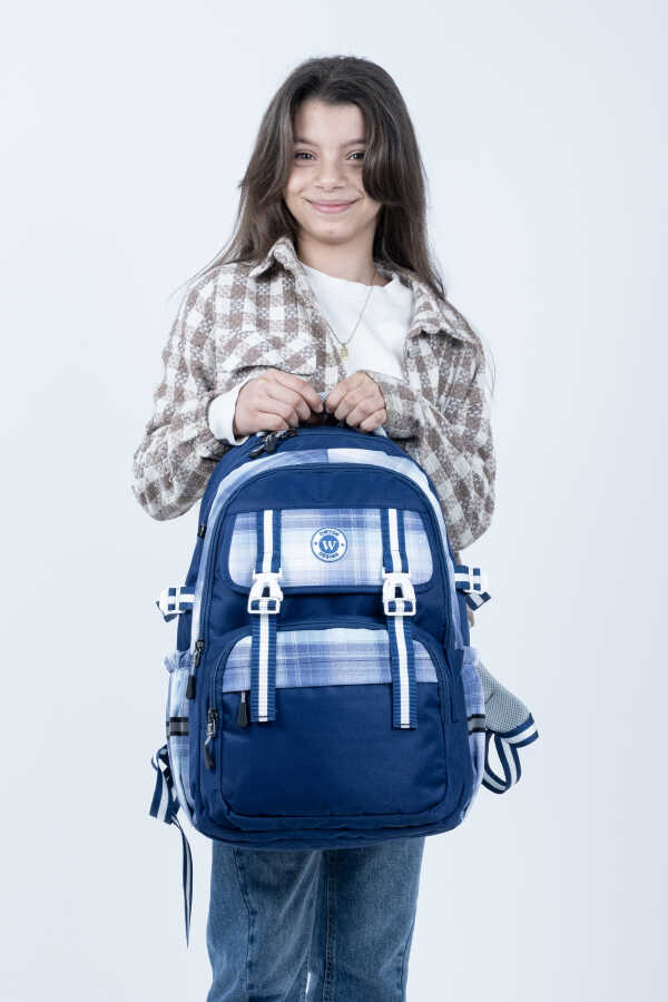 Yeni eğitim döneminde hem dayanıklı hem konforlu bir okul çantası arayan öğrenciler için tasarlanan bu mavi sırt çantası, 4 bölmeli geniş iç hacmi sayesinde kitap, defter ve okul gereçlerini düzenli şekilde taşımaya yardımcı olur.