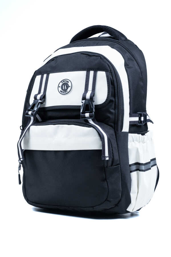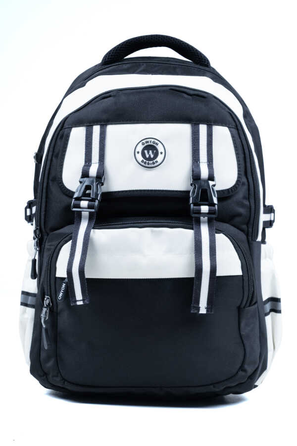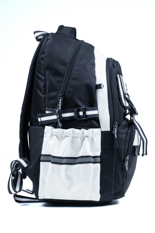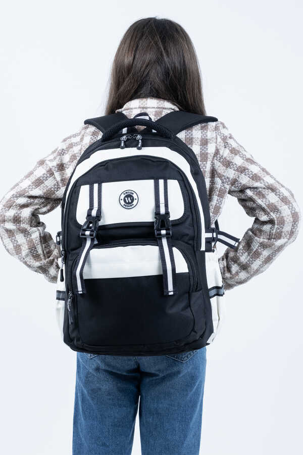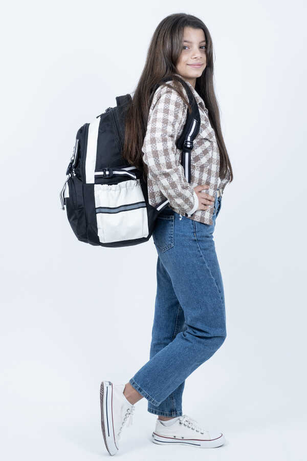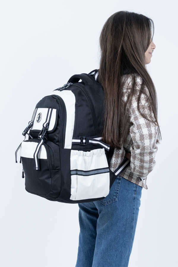 Siyah Beyaz Okul Çantası – Ortopedik ve Su Geçirmez 4 Bölmeli Tasarım