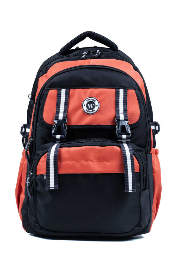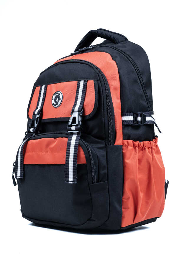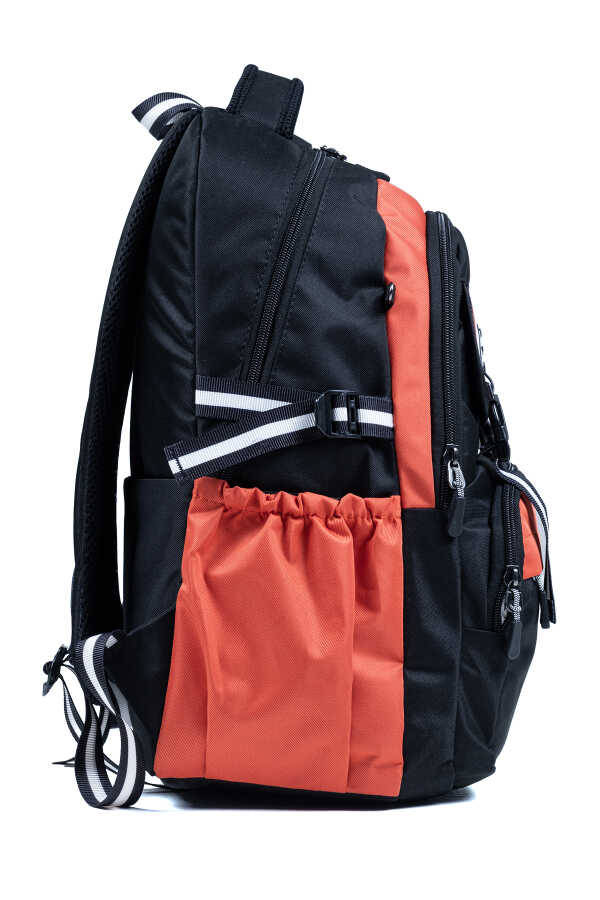 Siyah Turuncu Okul Çantası – Ortopedik ve Su Geçirmez 4 Bölmeli Tasarım