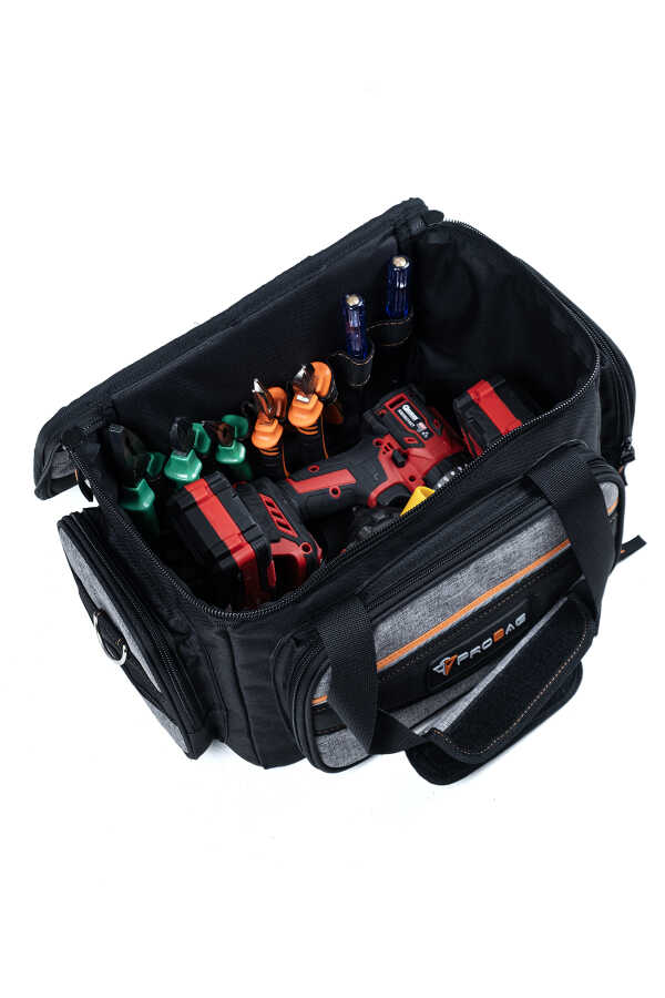 Probag çok bölmeli bez alet çantası; elektrikçi, tesisatçı ve teknik servis çalışanları için tasarlanmış dayanıklı ve fonksiyonel bir takım çantası modelidir. 14 gözlü organizer yapısı sayesinde el aletlerinizi düzenli, güvenli ve pratik şekilde taşımanızı sağlar.