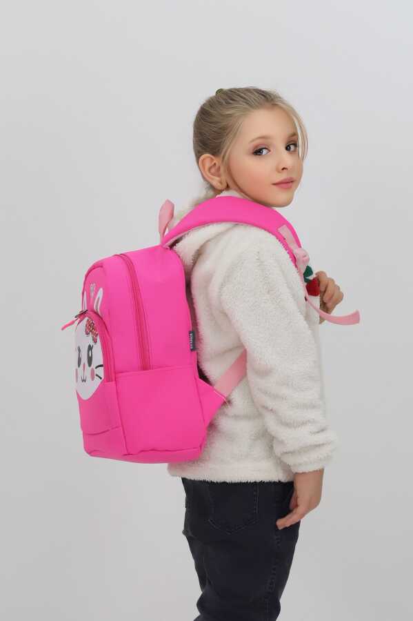 Tavşan Figürlü Fuşya Kız Çocuk Anaokulu Kreş Sırt Çantası (36x26x14 cm)