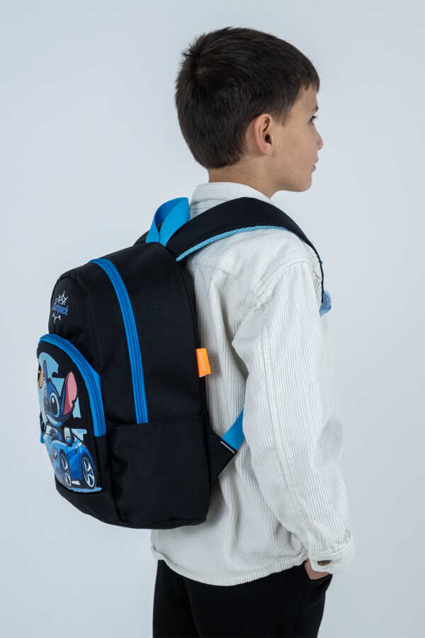 Hız tutkunu minikler için tasarlanan Sitiç figürlü ve spor arabalı havalı tasarımı ile bu siyah erkek çocuk sırt çantası, anaokulu ve kreş çağındaki çocuklar için hem eğlenceli hem de kullanışlı bir seçenektir. Dinamik görünümü sayesinde çocukların severek taşıyacağı bir okul çantasıdır.