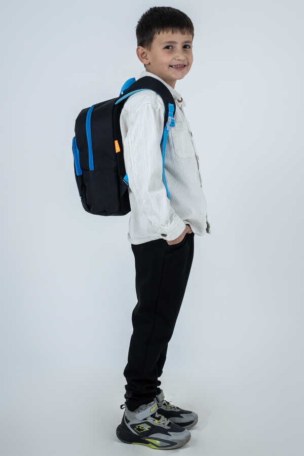 Siyah zemin üzerine yerleştirilen canlı mavi fermuar ve askı detayları çantaya enerjik bir hava katar. Hafif yapısı ve ayarlanabilir omuz askıları sayesinde gün boyu konforlu bir kullanım sunar.