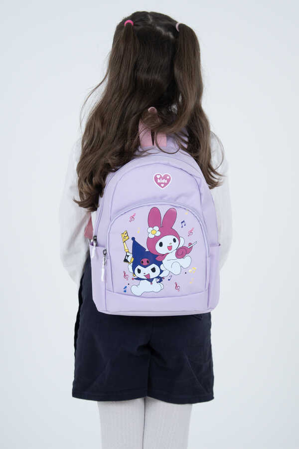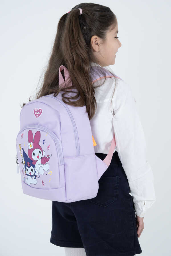 Çocuğunuzun severek kullanacağı My Melody ve Kuromi figürlerinden ilham alan sevimli tasarımı ile bu açık mor kız çocuk sırt çantası, anaokulu ve kreş çağındaki minikler için özel olarak tasarlanmıştır. Müzik notaları ve enstrüman detaylarıyla süslenmiş eğlenceli görünümü sayesinde çocukların ilgisini çeker.