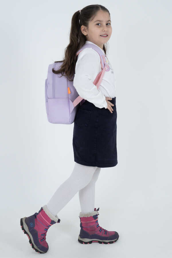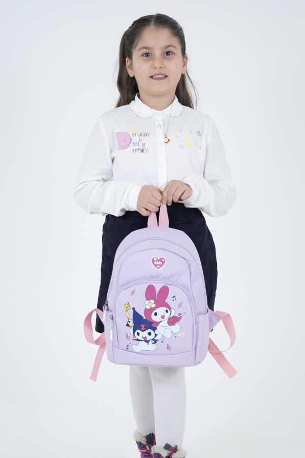 Sevimli müzik teması, geniş iç hacmi ve hafif yapısıyla My Melody & Kuromi figürlü açık mor kız çocuk sırt çantası, miniklerin okul hayatına keyifli ve konforlu bir başlangıç yapması için ideal bir tercihtir.