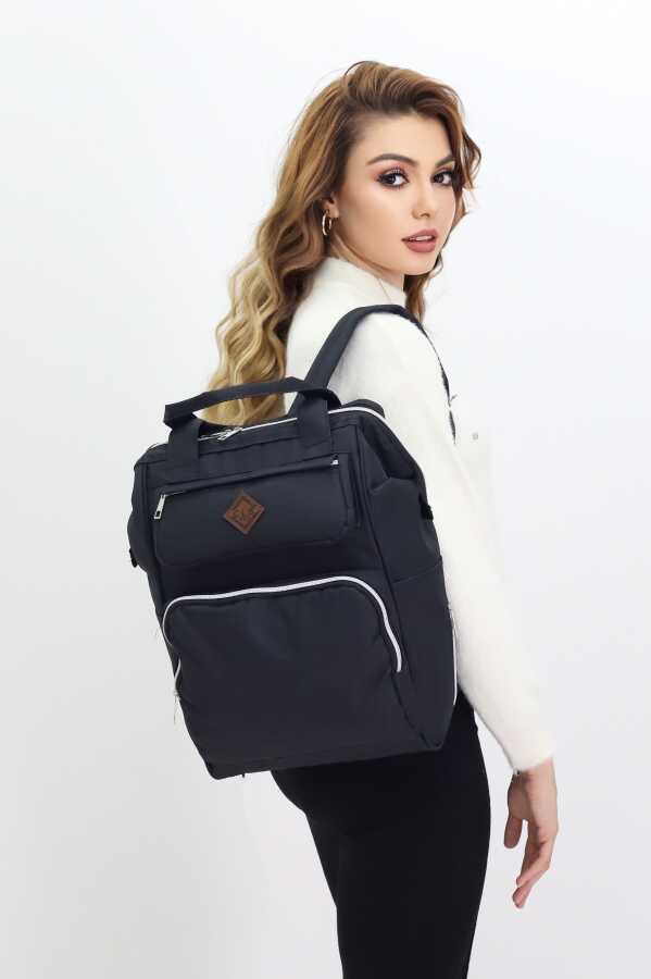 Termal Anne Sırt Çantası, Siyah Bakım Çantası, Bebek Sırt Çantası, Termal Biberon Gözlü Çanta, Su Geçirmez Bebek Çantası, Büyük Hacimli Anne Çantası, Puset Uyumlu Sırt Çantası, Modern Bebek Çantası.